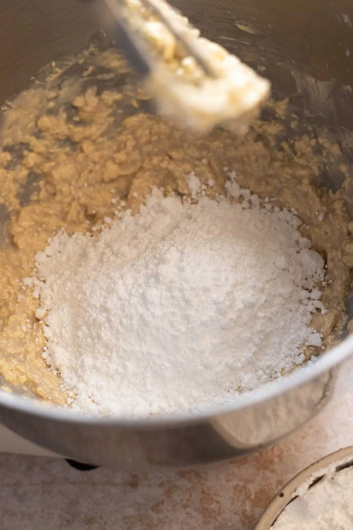 - Add the icing sugar all at once and beat more starting with the lowest power. Increase the speed once everything is combined and beat a little bit more, about 1-2 mins.