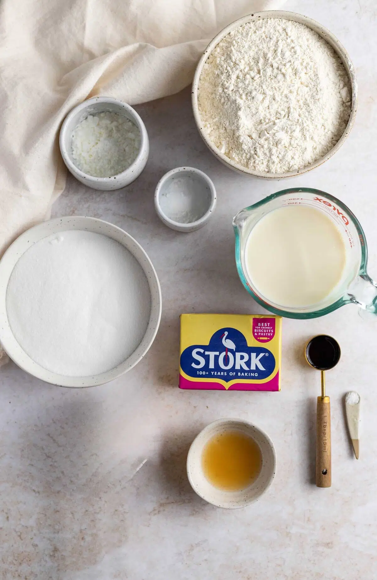 - 2 & 3/4 cups (310g) plain flour